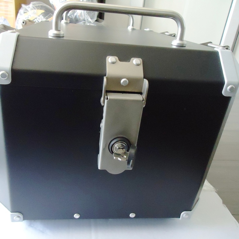 Maleta trasera Mytech, simplemente espectacular. Diseño italiano, máxima resistencia. Fabricada por la prestigiosa marca MyTech en aluminio. Equipada con doble cierre. Incorpora asas superiores y enganches en acero inoxidable para poder enganchar bolsas o cualquier otro artículo. El anclaje es fijo mediante 4 tornillos de fácil acceso desde el interior pero imposibles de sacar desde fuera (Top case de seguridad). Mytech fija sus baúles a las bases mediante tornillos para asegurar que nunca saltará ni vibrará en marcha.